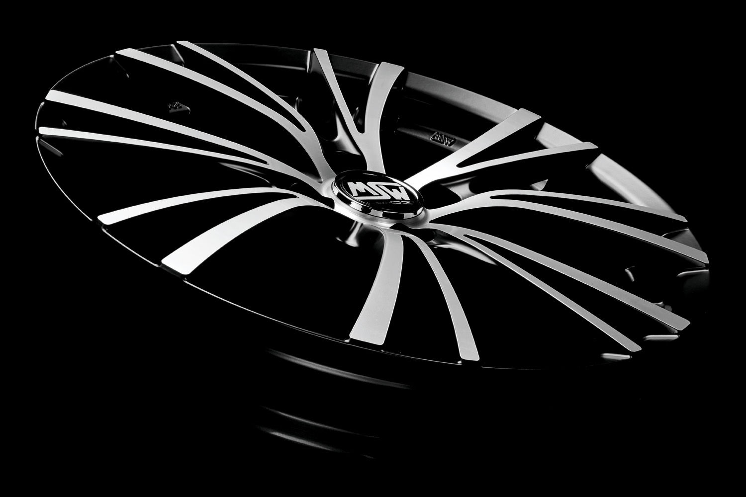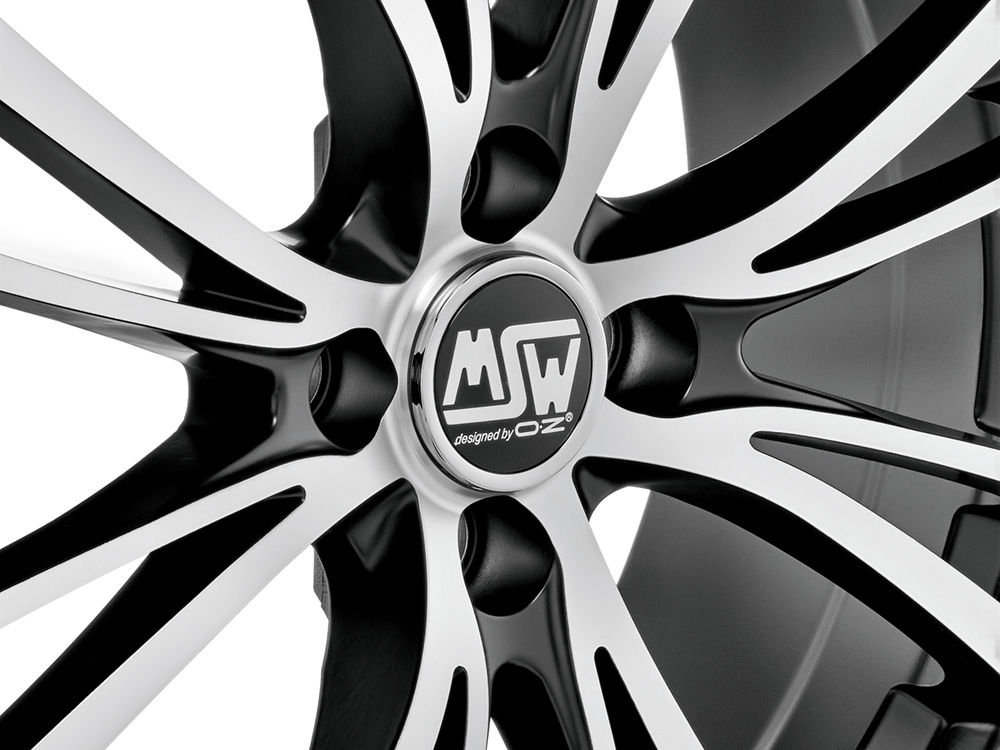 MSW 20/4 just might be the most eccentric member of the MSW family. Designed with 8 curved double spokes, one slender, another wider, to create a visual interplay of shapes and contours. The wheel and outer lip are black, flange entirely full polished for extreme light-reflection. This is the MSW 20/4, the wheel that, thanks to its contrasts, lends stand-out visibility to the compact sports cars for which it was designed.
